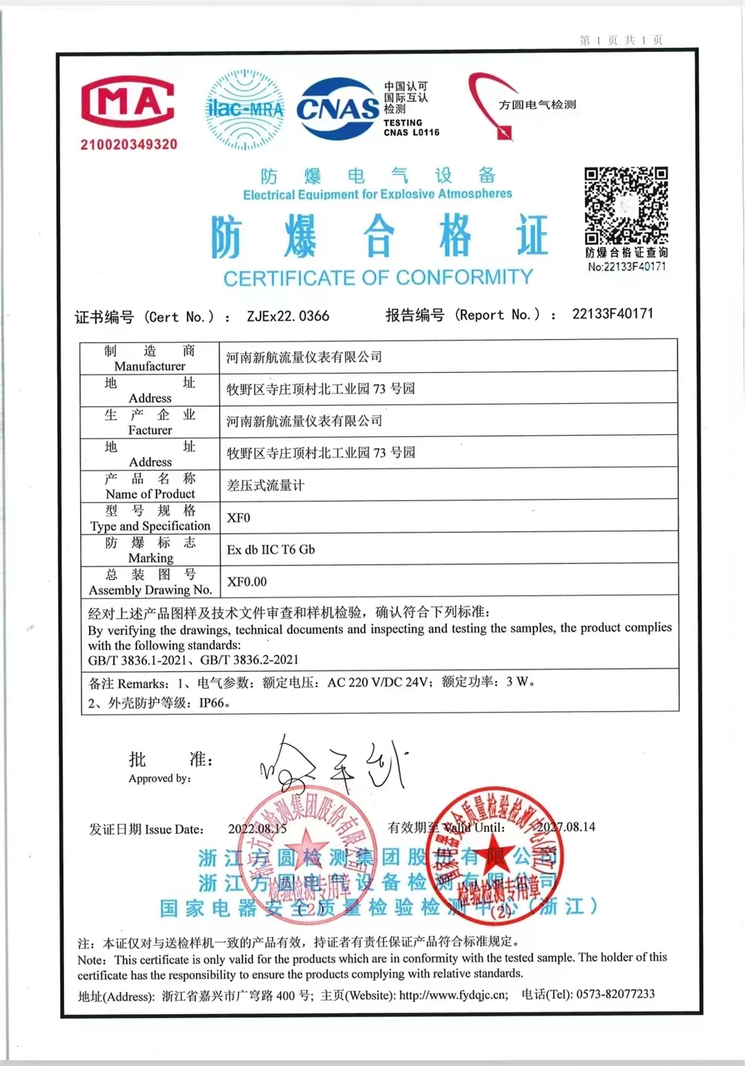 差壓式防爆合格證